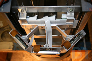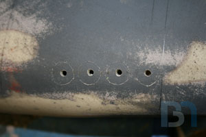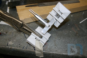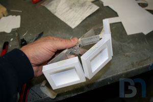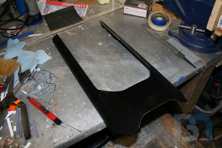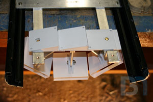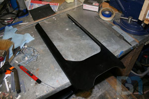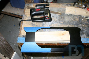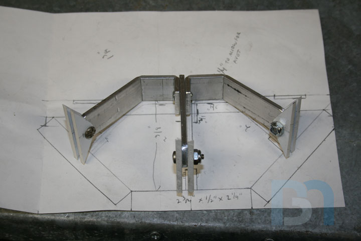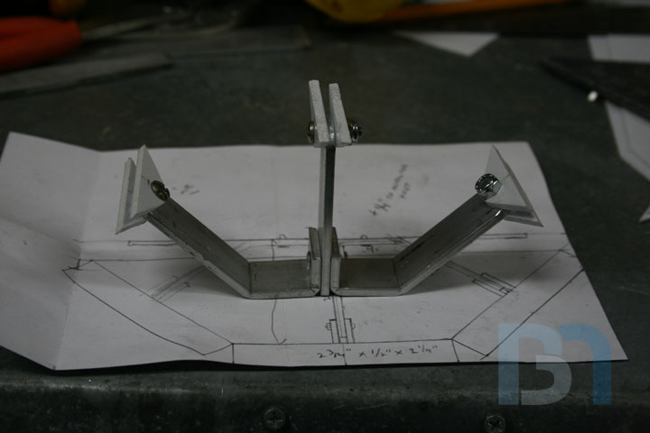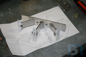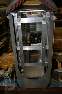 Starting on the front panel, I prepped the panel by removing material from the top. I then added aluminum support brackets.