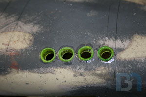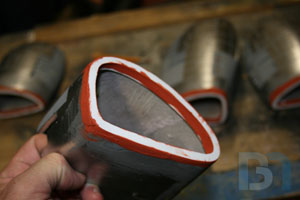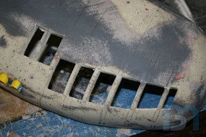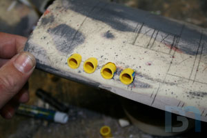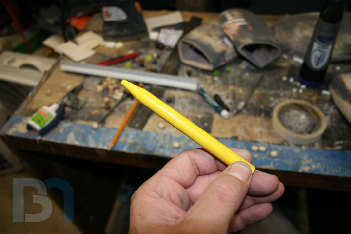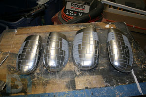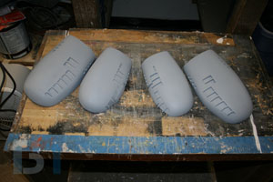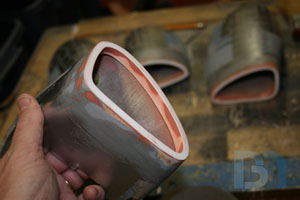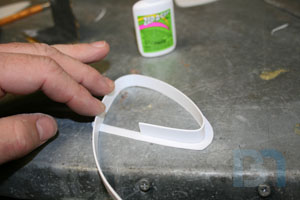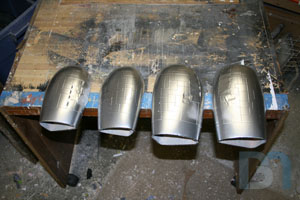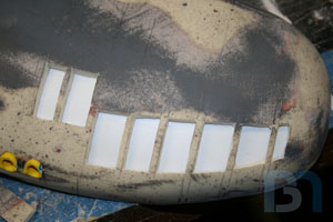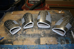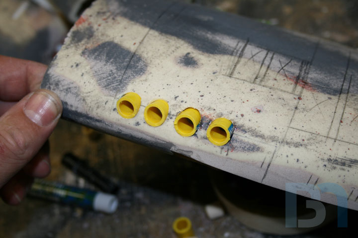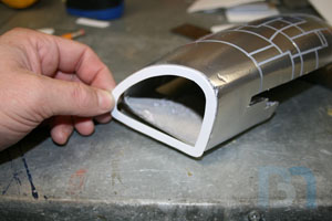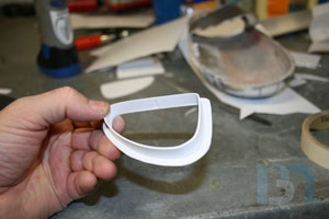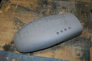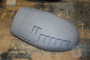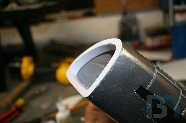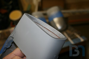 For the ends, I used the pods as a template and cut out the shape. I added an inner strip to it and fit it into the pod. I used some spot filler and sanded it smooth before shooting it with a coat of primer.