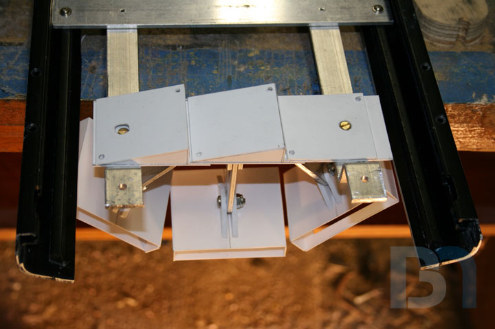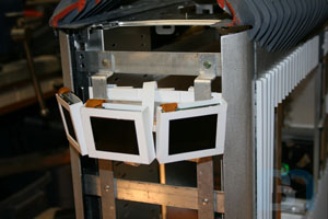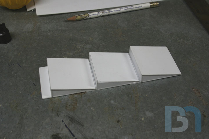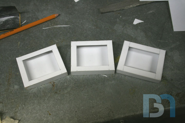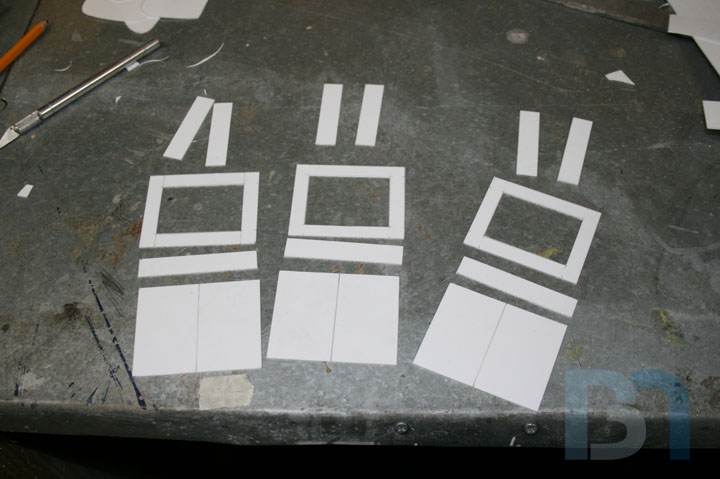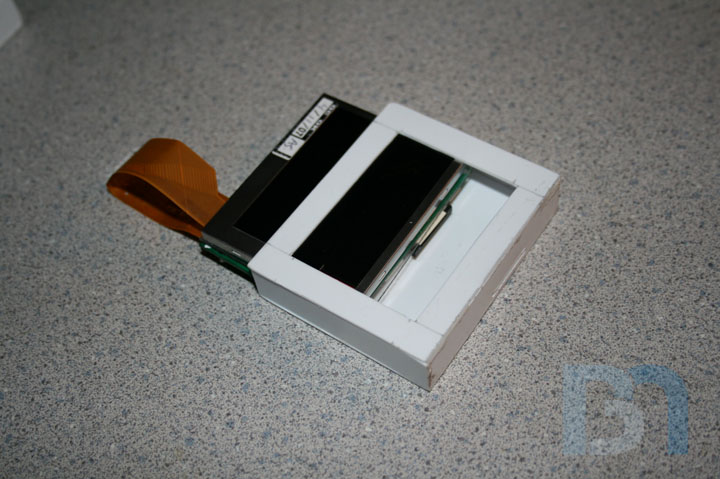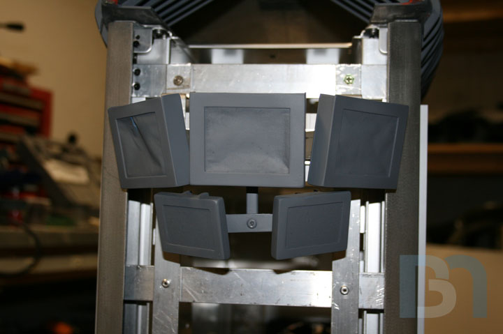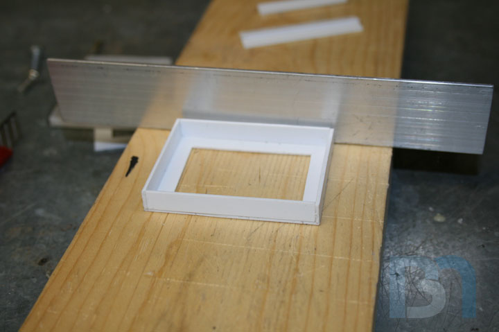LCD SCREENS: I will be mounting multiple LCD screens in the front of the case. These screens are only 2.5" and will be mounted in a cluster-like fashion, similar to the data readout display seen on Galactica's bridge. After measuring the width of the front opening, I came up with a design for the screen mounting assembly and proceeded to make the pieces. Since the screens are just the LCD modules and didn't come with any sort of enclosure, I made some pockets for them. The screens are 2.5" LCD modules by Accele-vision. I got them through Millertech. Thanks Patrick!