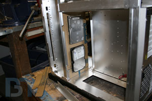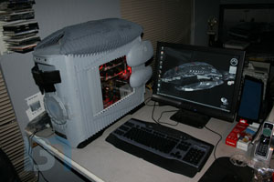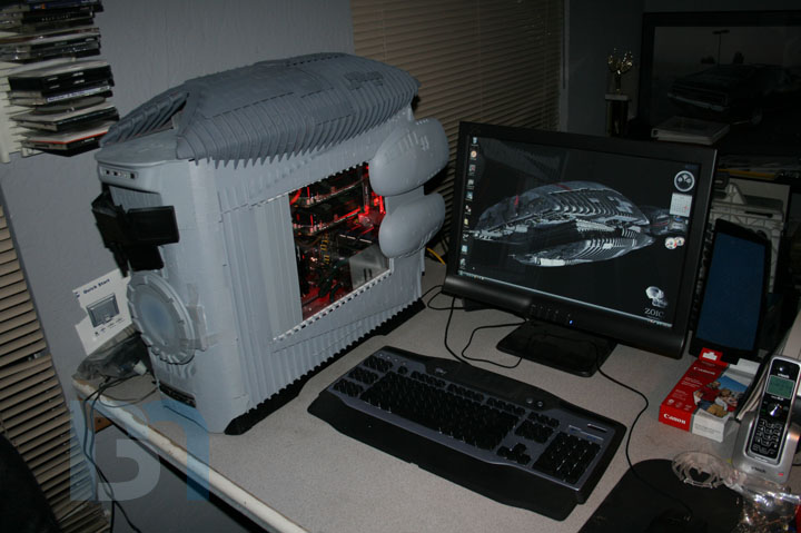 OK, here it is: BSG will have fully operational motorized blast doors, one on each side. So far I've got both doors built, and one side totally loaded up onto the spool. The doors themselves are made up of .010 sheets and .040 strips of styrene, spaced 1/8" apart. The result is a strong but flexible door that looks and acts like a segmented garage roll-up type door. I glued styrene C-channel to the top and bottom of a piece of clear acrylic. These will be the tracks in which the doors will travel. Here is the whole thing positioned in the side panel. I forgot to take pictures of it, but I added a gentle curve to the acrylic on the front end heading towards the hard drive cage. I had to cut away part of the drive cage to allow the doors to pass through to the spool. To provide a smooth corner for the doors to travel around, I cut a channel out of a piece of acrylic tubing and fit it over the sharp edge of the drive cage. Here is the panel on the case, with the blast door in its fully open position. It could open more, but the drive cage's posterior support beam is right there with nothing exciting to see beyond that, so there's no need to open any further. You can see the door reeled up on the spool, demonstrating how flexible it is. Now it's on to the other side to finish the tracks and door fitment. I'm still waiting on the servos and limit switches, so I won't be able to finish the blast door assembly until then. But it's not like I won't have any work to do while I'm waiting!