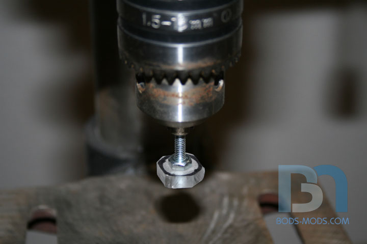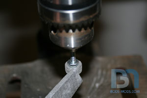Worked on making a small pulley for the small roller last night. I measured out a circle about 1/2" diameter on 1/4" thick acrylic and cut it out. I stuck a bolt through it, then using the ol' drill press, I proceeded to file it down to size. This makes a perfect circle. Then I made the channel of the pulley with a round file. Next up, gluing it to the roller, and adjusting the servo mount.