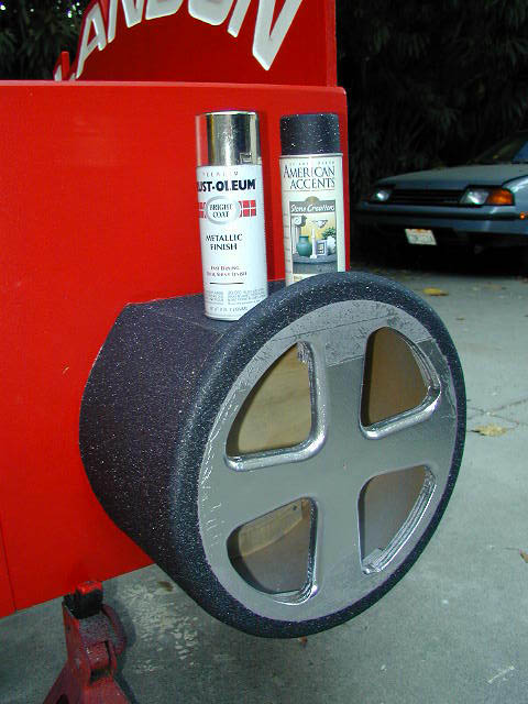The tires were painted with black texture paint, and the centers with chrome paint.