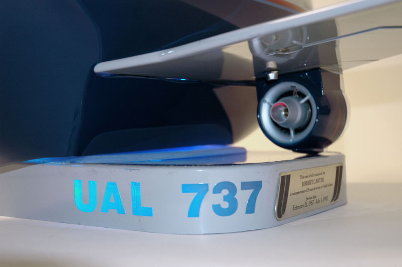I wanted to build my dad a case for a birthday/father’s day gift. He is a retired United Airlines mechanic, with 35 years of service. I figured it would make a great theme if I were to pay tribute to his long and illustrious career. Since he worked primarily on the Boeing 737s, I designed the case to resemble one with the United colors.